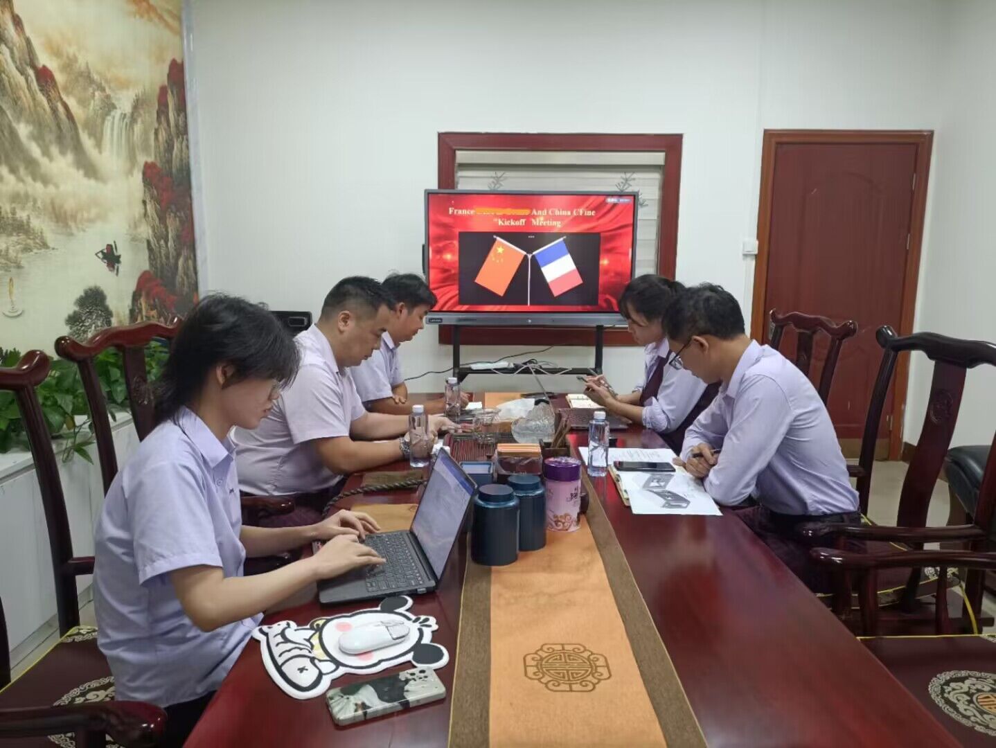 與法國客戶視頻會(huì)議