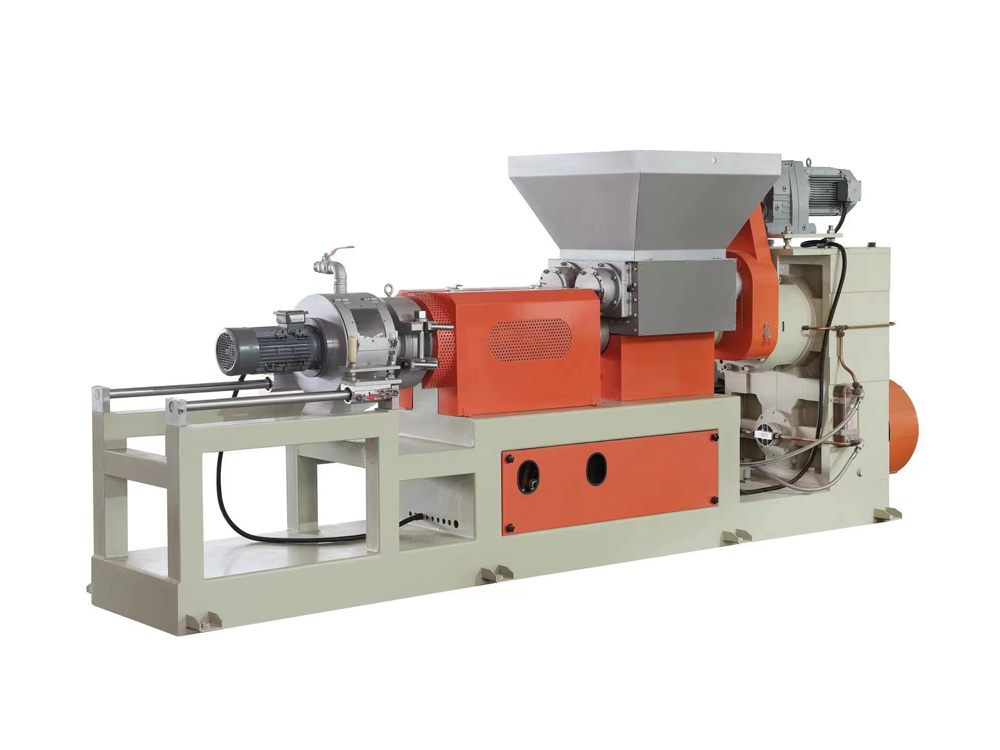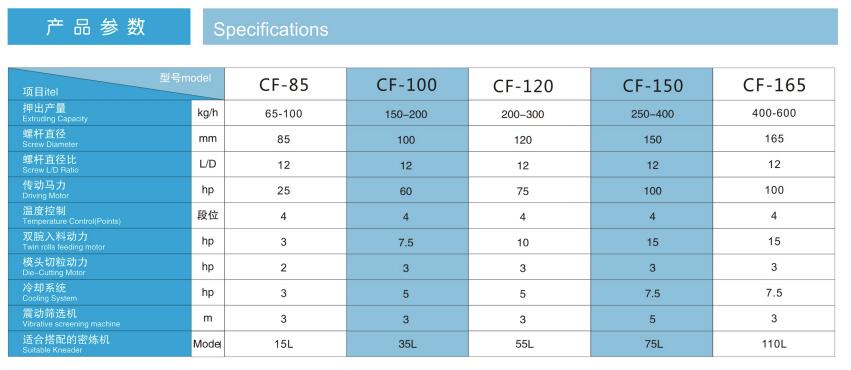 此機(jī)臺用于PVC,EVA,TPR等塑膠原料的生產(chǎn),包括主機(jī),雙腕入料,模頭切粒等系統(tǒng)將密煉機(jī)攪拌好的原料經(jīng)雙腕擠入造粒機(jī)內(nèi)經(jīng)螺桿擠出后切成粒子,此機(jī)臺操作簡單
